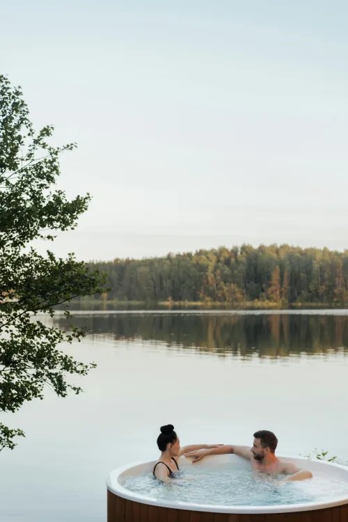 Buiten op het terras wacht een extra luxe verrassing: een privé-bubbelbad. Hier kun je heerlijk ontspannen onder de sterrenhemel of na een lange dag in de natuur genieten van het warme water, omgeven door de rust van het bos. Dit maakt Casa 10 de perfecte combinatie van luxe en natuurbeleving.